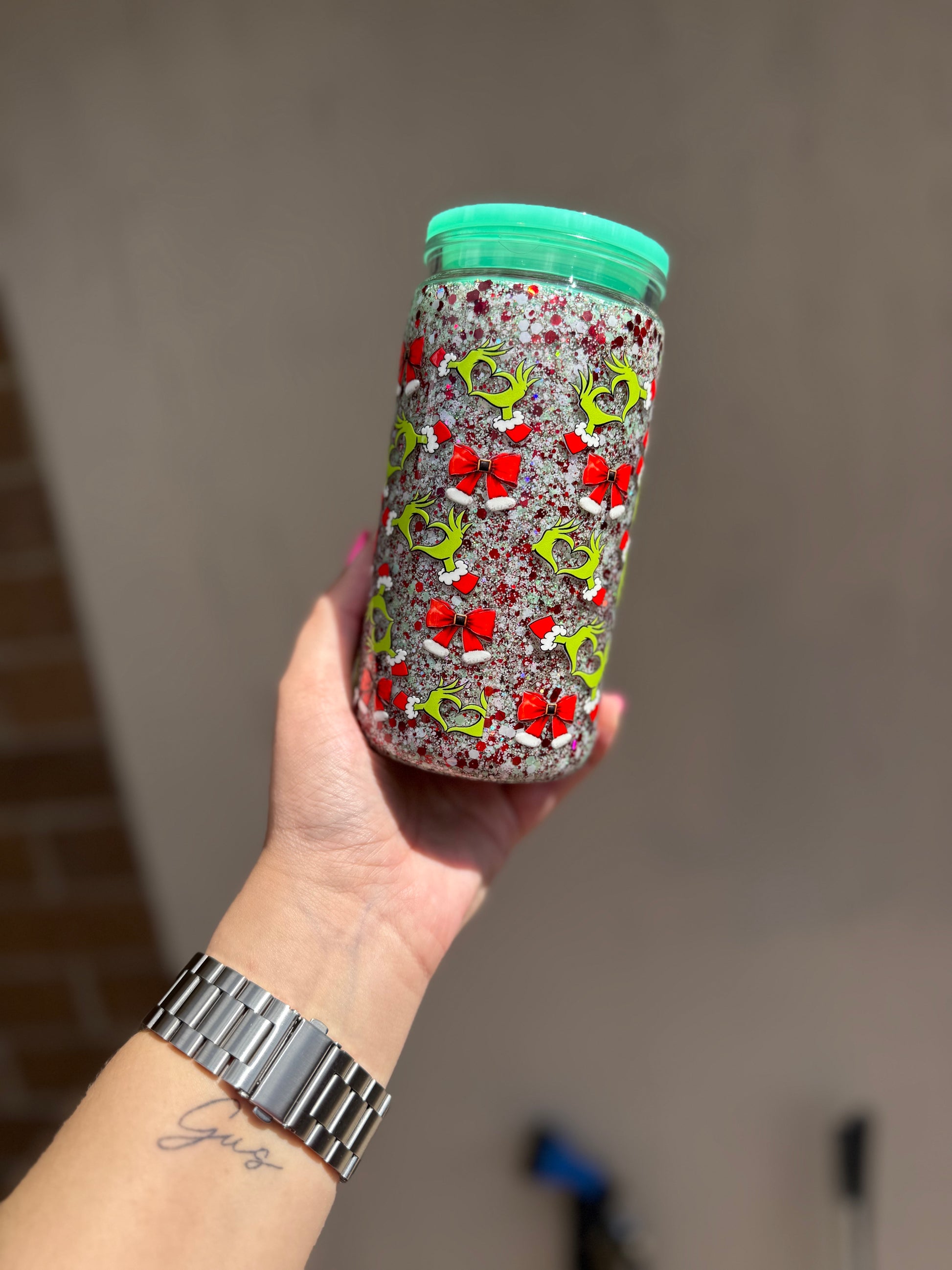Get ready to sip with a side of Grinch energy! This cheeky Green Man hands tumbler features mischievous green hands flashing a heart gesture because even the grumpiest of hearts can't resist a little Christmas magic. Durable, playful, and guaranteed to spark conversations, this tumbler brings quirky charm to your seasonal sipping. Ideal for Grinch fans and anyone who loves a dash of festive sass with their drinks!