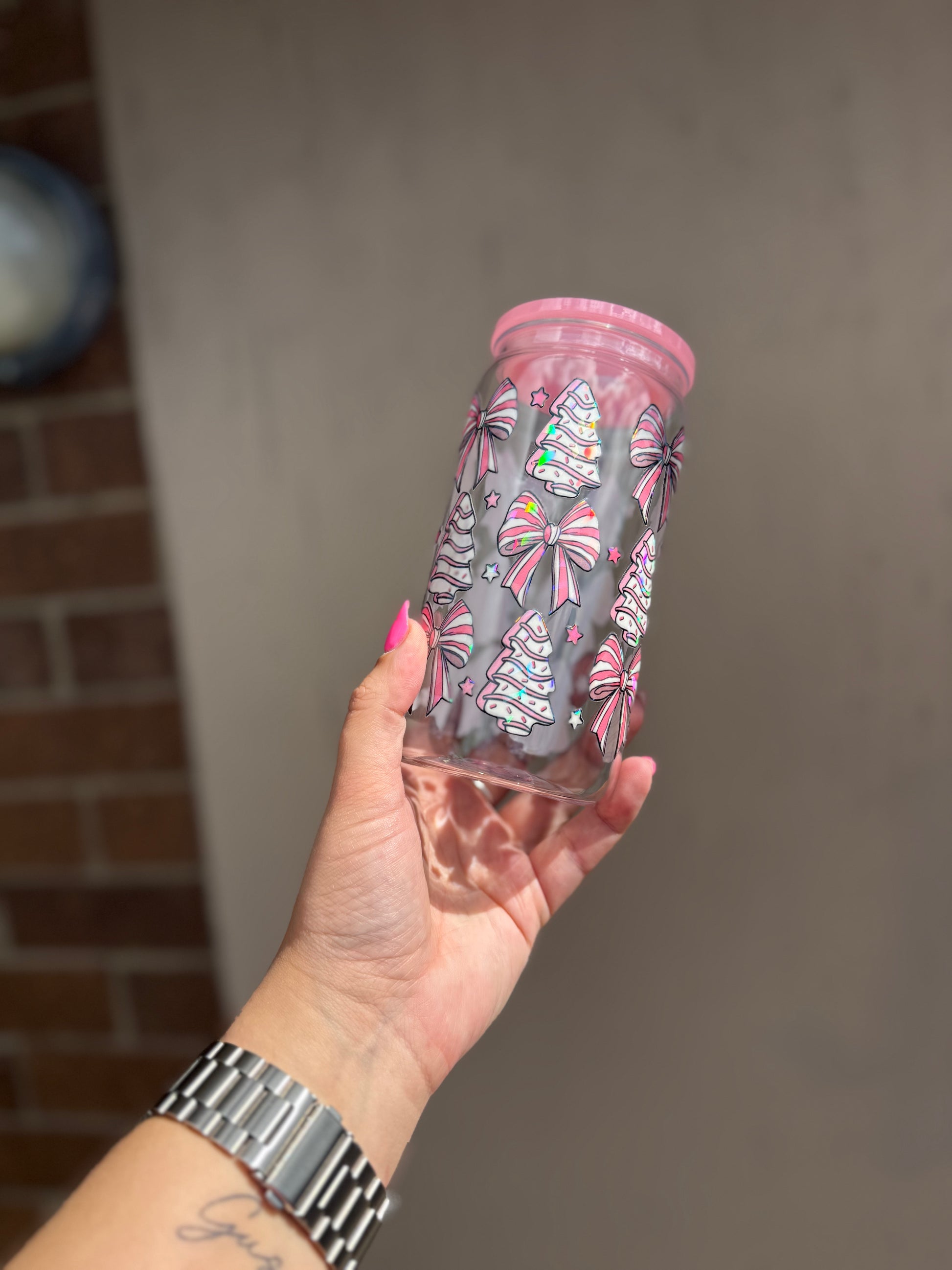 Sip in style this festive season with our Holographic Pastel Christmas tumbler! Featuring a dreamy blend of soft pink hues and shimmering holographic details, this whimsical design brings a modern twist to traditional holiday vibes. The charming tree motif adds a touch of seasonal magic, while the playful pastel palette keeps things fresh and fun. Perfect for your favourite iced coffee, or your favourite cold beverage, this tumbler is an instant mood-booster that celebrates Christmas with personality and sparkle.